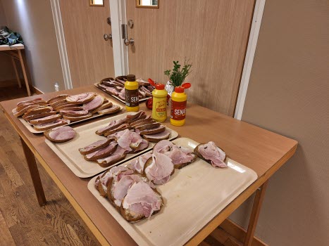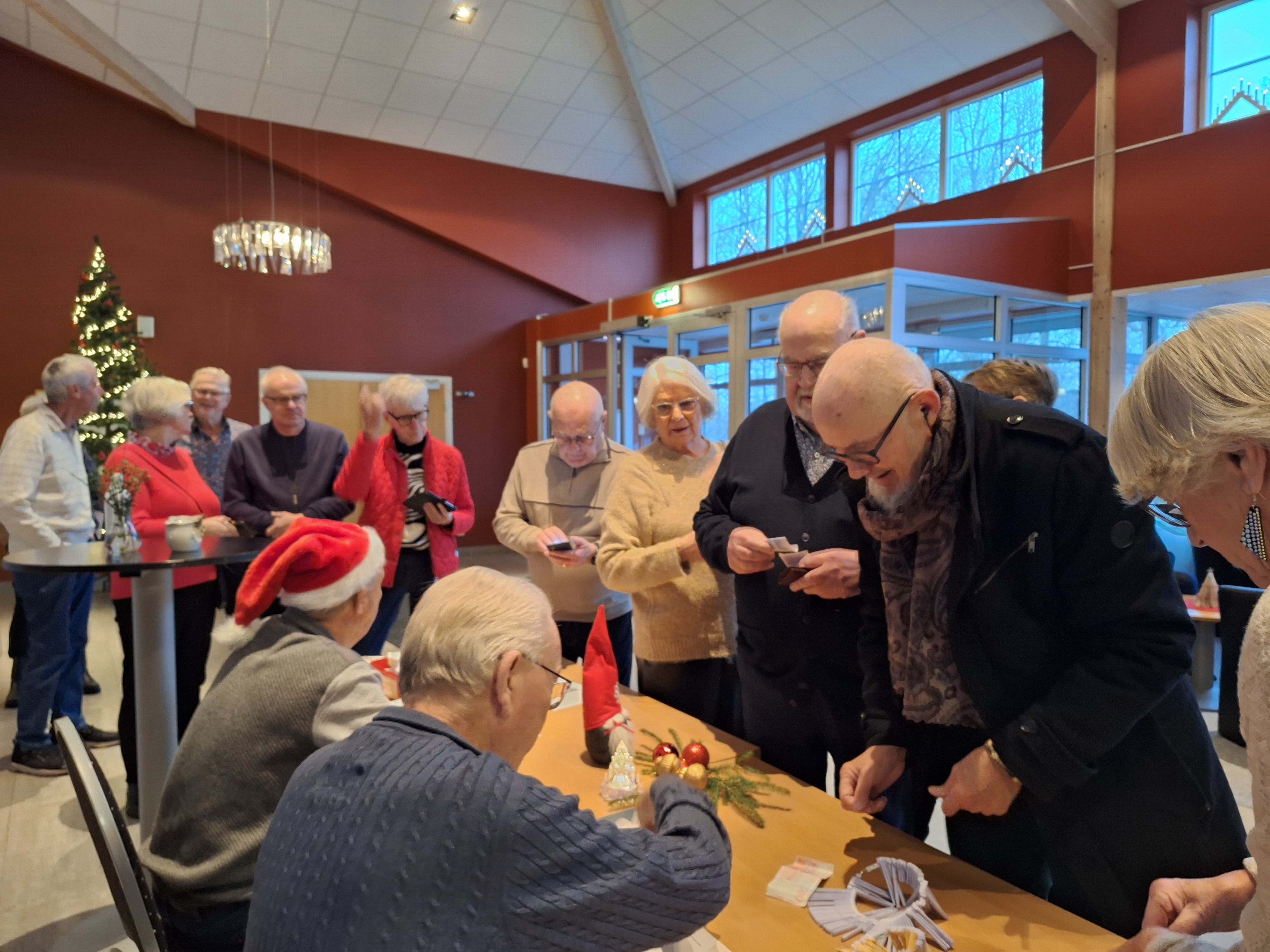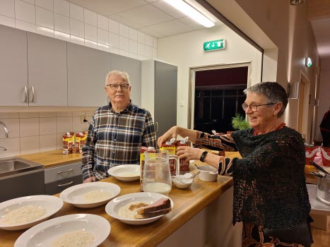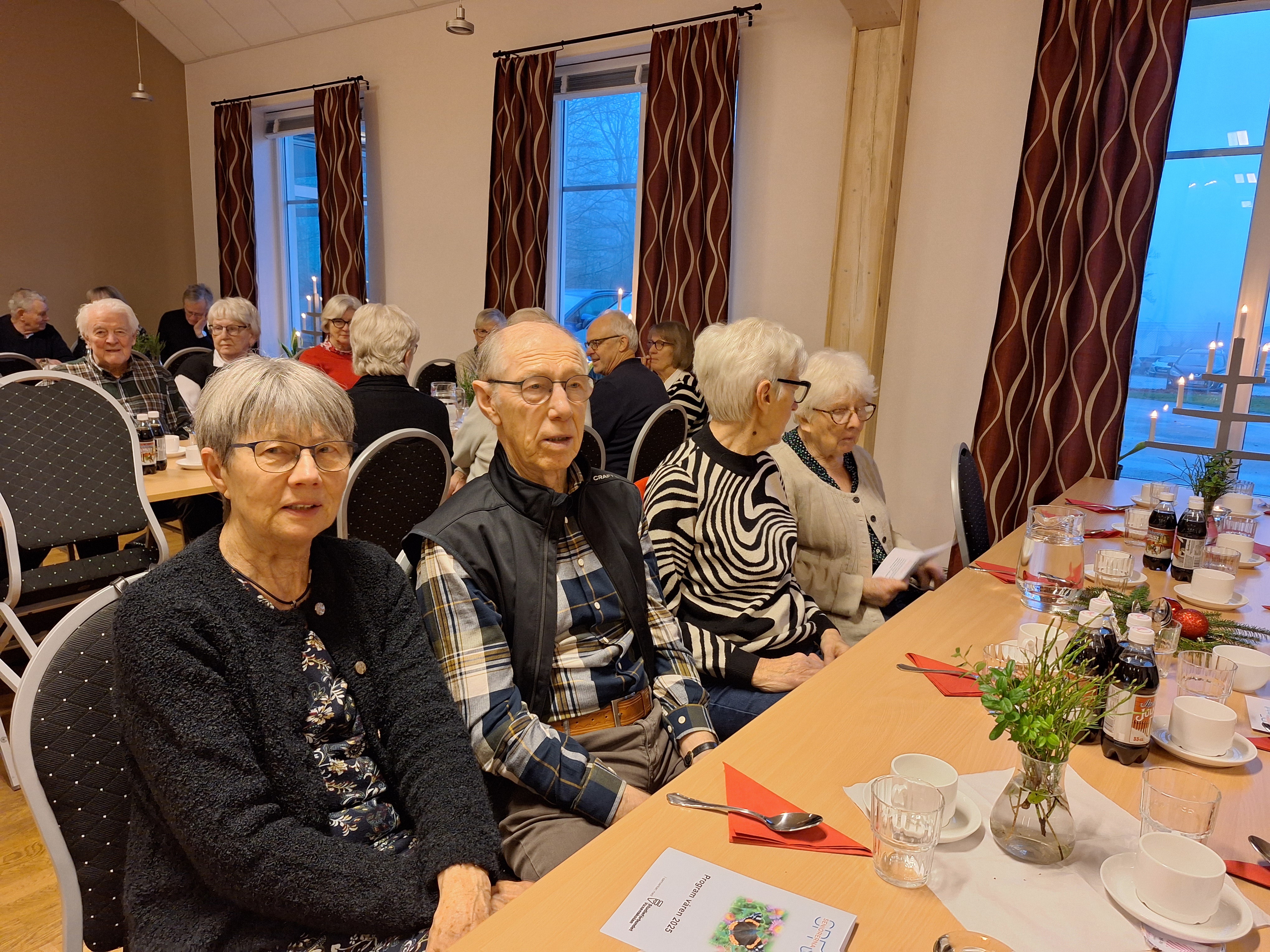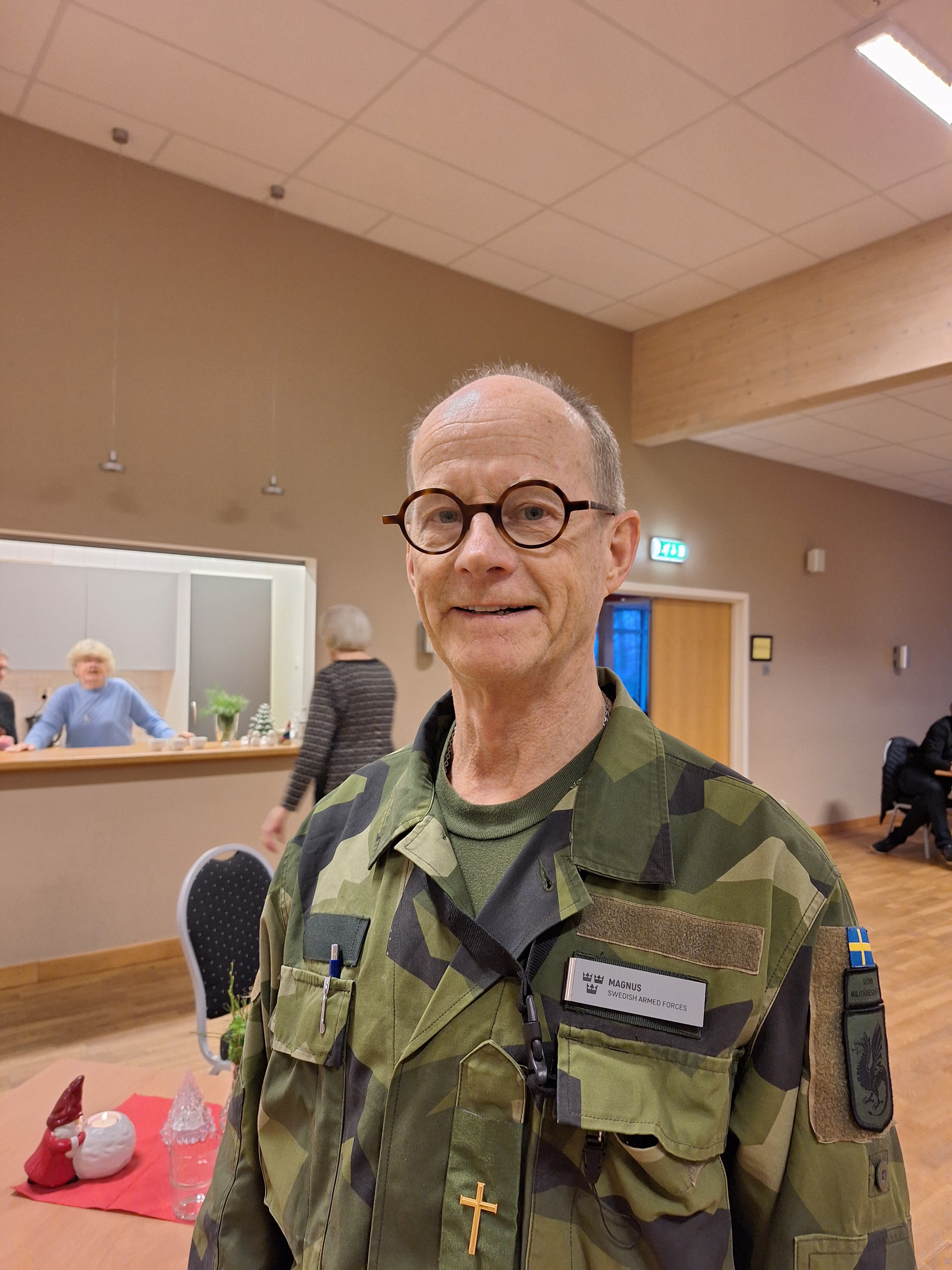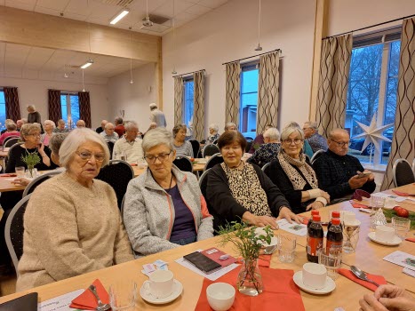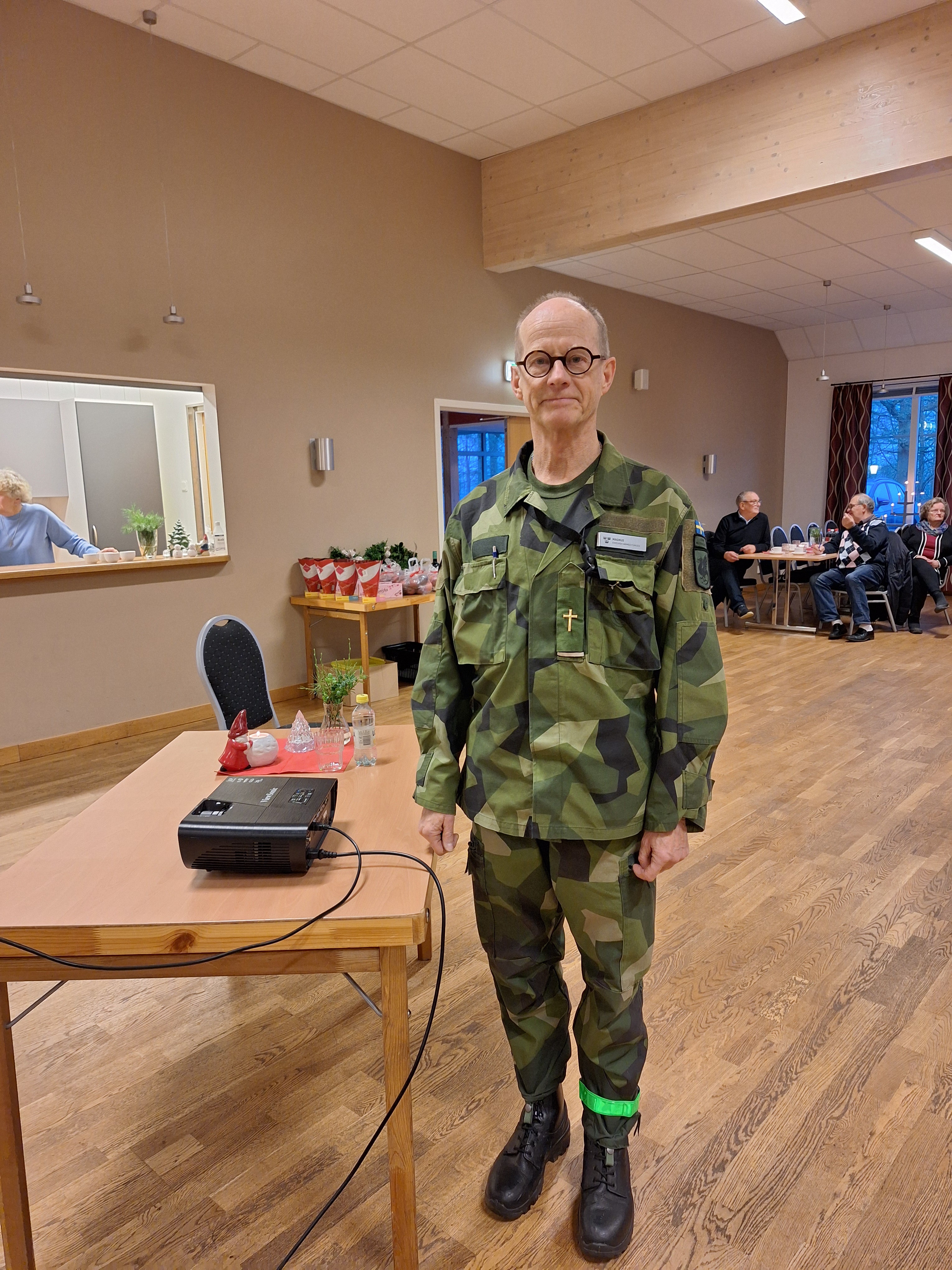 Föreläsningen av Magnus Hedin hade lockat över 100 personer att anmäla sig. Han talade under rubriken "Tillsammans blir vi starkare" om militär själavård i ett nytt omvärldsläge. Återseendets glädje var stor när vi fick tillfälle att träffa Magnus som tjänstgjort som präst i vår församling i 10 år. Efter föreläsningen serverades risgrynsgröt och skinksmörgås. Många vann trevliga vinster i lotteriet.