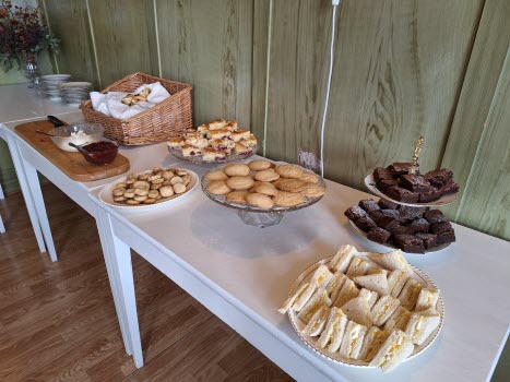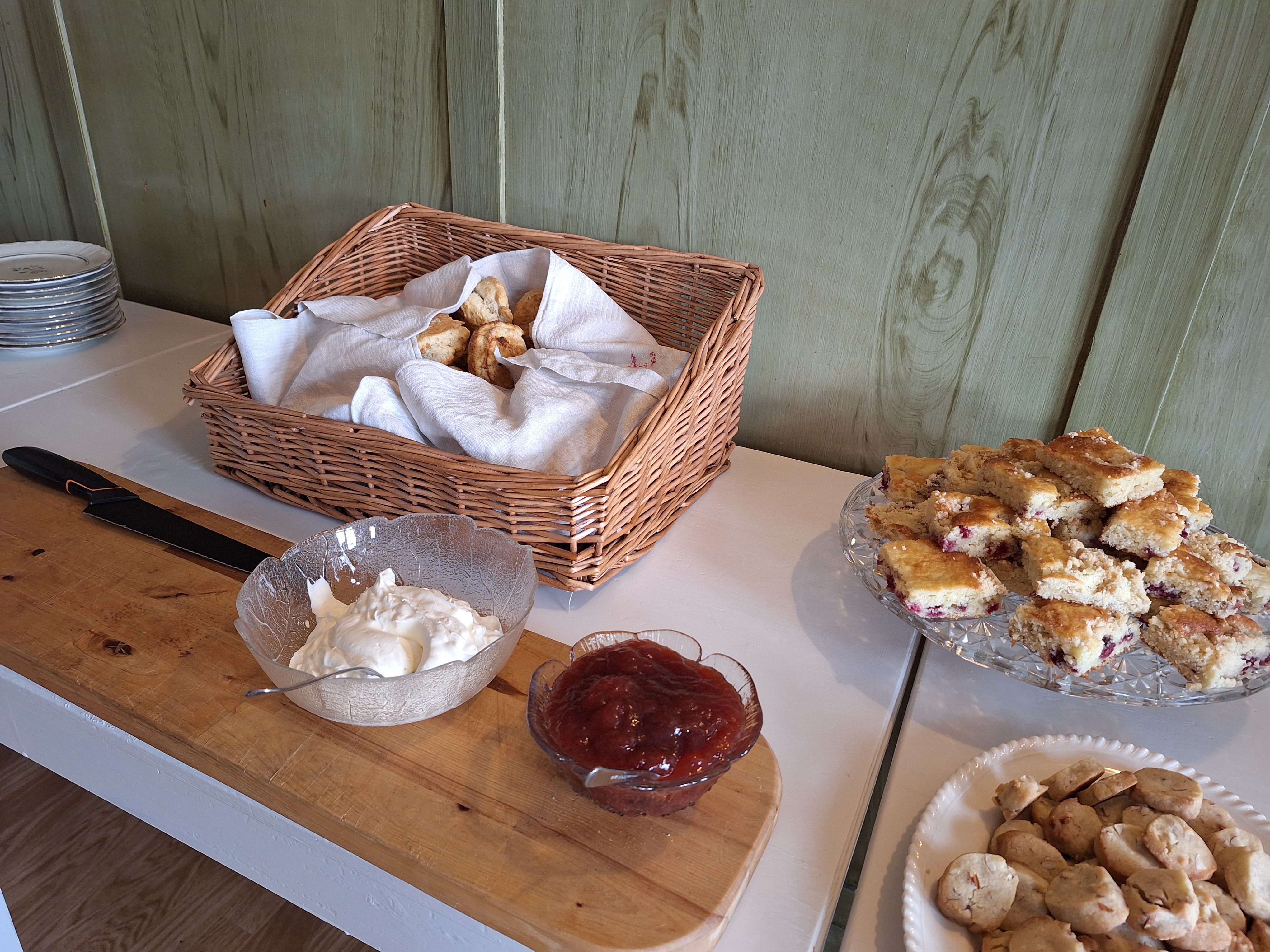 Därefter serverades scones, snittar och flera sorters goda kakor. Olika sorters te fanns att välja på.