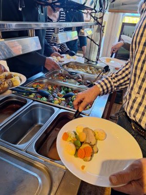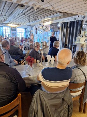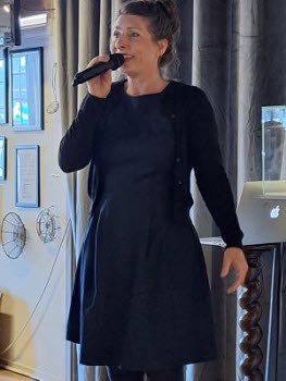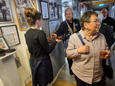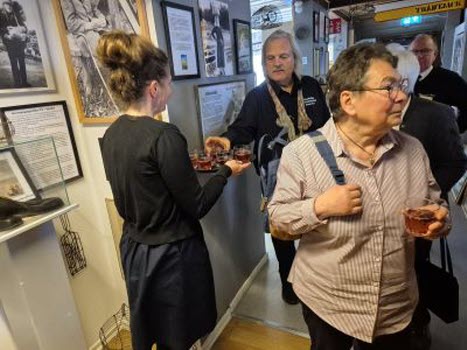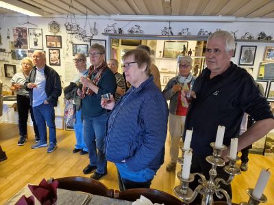 Vi välkomnades med en god välkomnstdrink och Göran berättade kort om museets tillkomst. Sedan överraskade Nadine Weiland oss med att sjunga några välkända sånger. Hon har sjungit ihop med Robert Wells och hon sjunger i ett storband från Kalmar samt ger konserter i kyrkor.