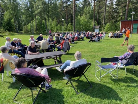 SPF Seniorerna Växjö har haft månadsmötenas våravslutning på VAIS-torpet likt tidigare år. Det var 5:e året som vi var på VAIS-torpet. Dagens aktiviteter hade dagens gäst hälsocoachen Anders Petersson fixat till allas uppskattning. Vi fick pröva på olika aktiviteter såsom steggolf, ”fotbollsrull”, styrketräning med gummiband, sitt/ståövning på tid, , balansgång på lina mm Quiz med kluriga frågor. Allt detta i en lagom promenadslinga. Anders pratade lite kring vikten av att röra på sig och han delade ut priser till tre vinnare i Quizen. Hela dagen underhöll Växjö Dragspelsklubb med trevlig musik. De har också blivit en tradition hos oss på VAIS-torpet. Efter alla aktiviteter var det grillkorv som gällde med Bo Helgé vid grillen. Och slutligen kaffe med kärleksmums. Ordf Christina Boström gladdes med styrelsen att det blev en så lyckad dag och hoppades att vi kan fortsätta med vårterminsavslutning på VAIS-torpet. Vi har ju under flera år haft aktiviteter där i hälsans tecken. Vårt bidrag till förbundets uppmaning att satsa på hälsofrämjande aktiviteter i glad gemenskap. Ordf informerade att datum för höstterminens månadsmöten är nu klara och information kommer att skickas ut till medlemmarna. Första månadsmötet i höst blir den 20 aug i Öjaby församlingshem med en ostkaketräff och trevlig underhållning. Styrelsen