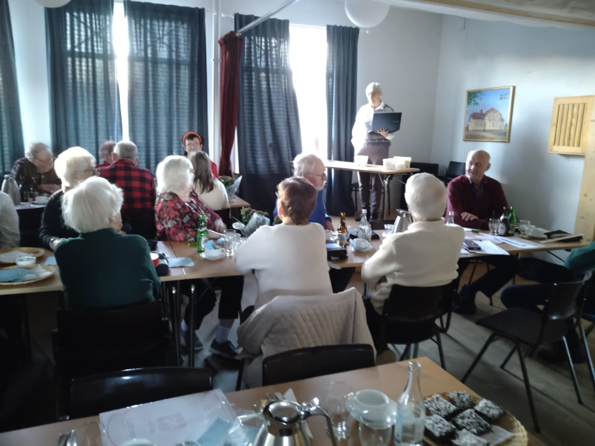 Föreningen höll sitt årsmöte den 28 februari kl 15.00 i Vrågården. 50 medlemmar kom till mötet. Roligt att så många ville vara med. Ordförande Yvonne Johansson öppnade mötet och inledde med att hålla parentation över de medlemmar som lämnade oss under 2024.