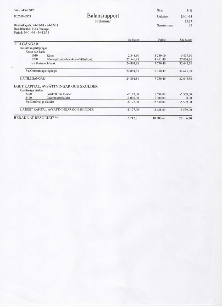 Resultat- och balansrapport