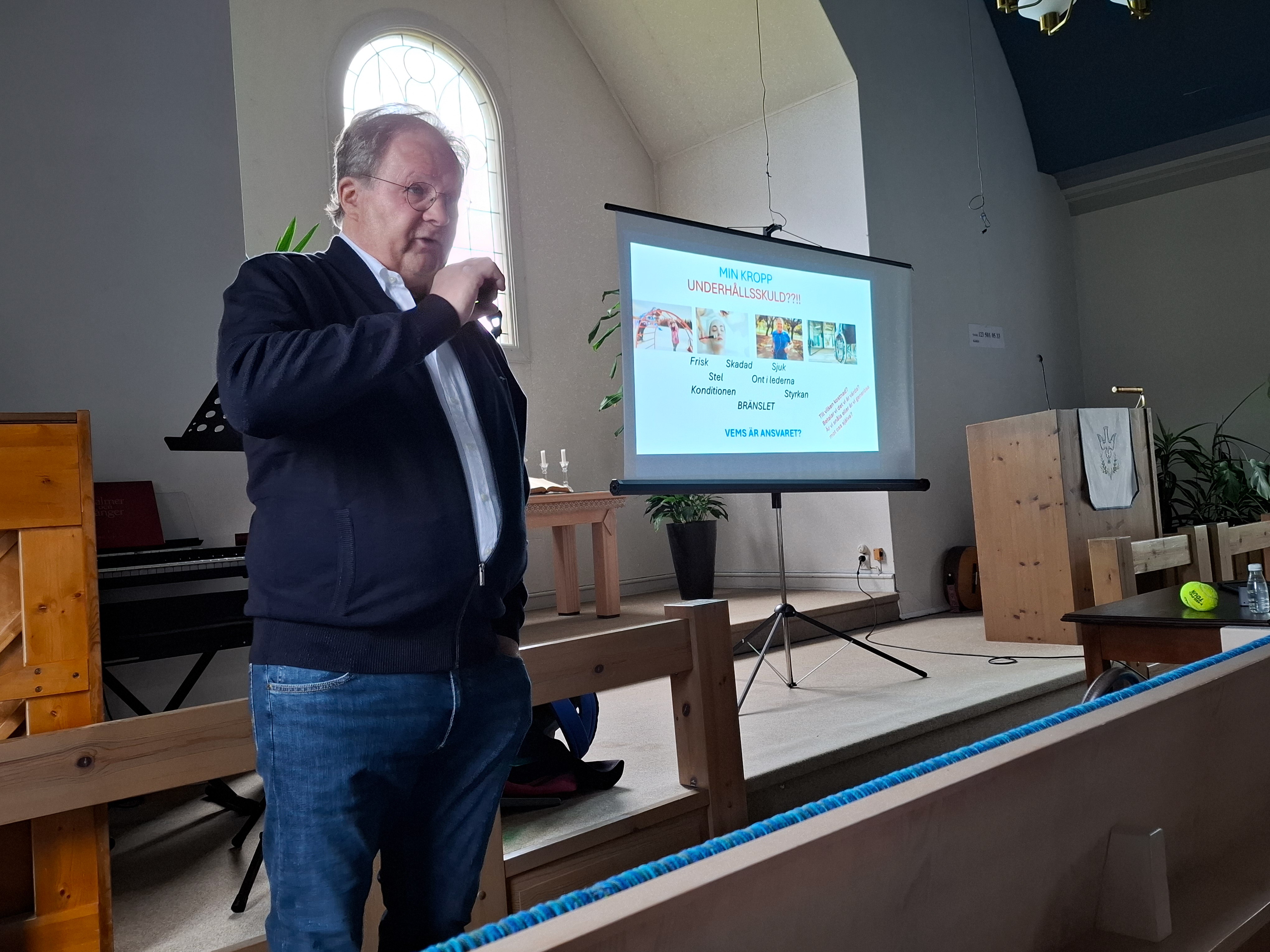 Torsdagen den 15 maj möttes vi i Allianskyrkan i Lidhult där vi gästades av Thomas Klüft, senior hälsocoach från Växjö som föreläser om fysisk och mental hälsa för oss som är 65+. Ämnet var “Må bra med enkla knep”. Vi fick lära oss mycket om hur kroppen fungerar och hur den påverkas av hur vi mår. Det är viktigt att vi rör på oss men det är också viktigt att ha roligt under tiden. Ett gott skratt sätter ingång flera positiva processer i kroppen.