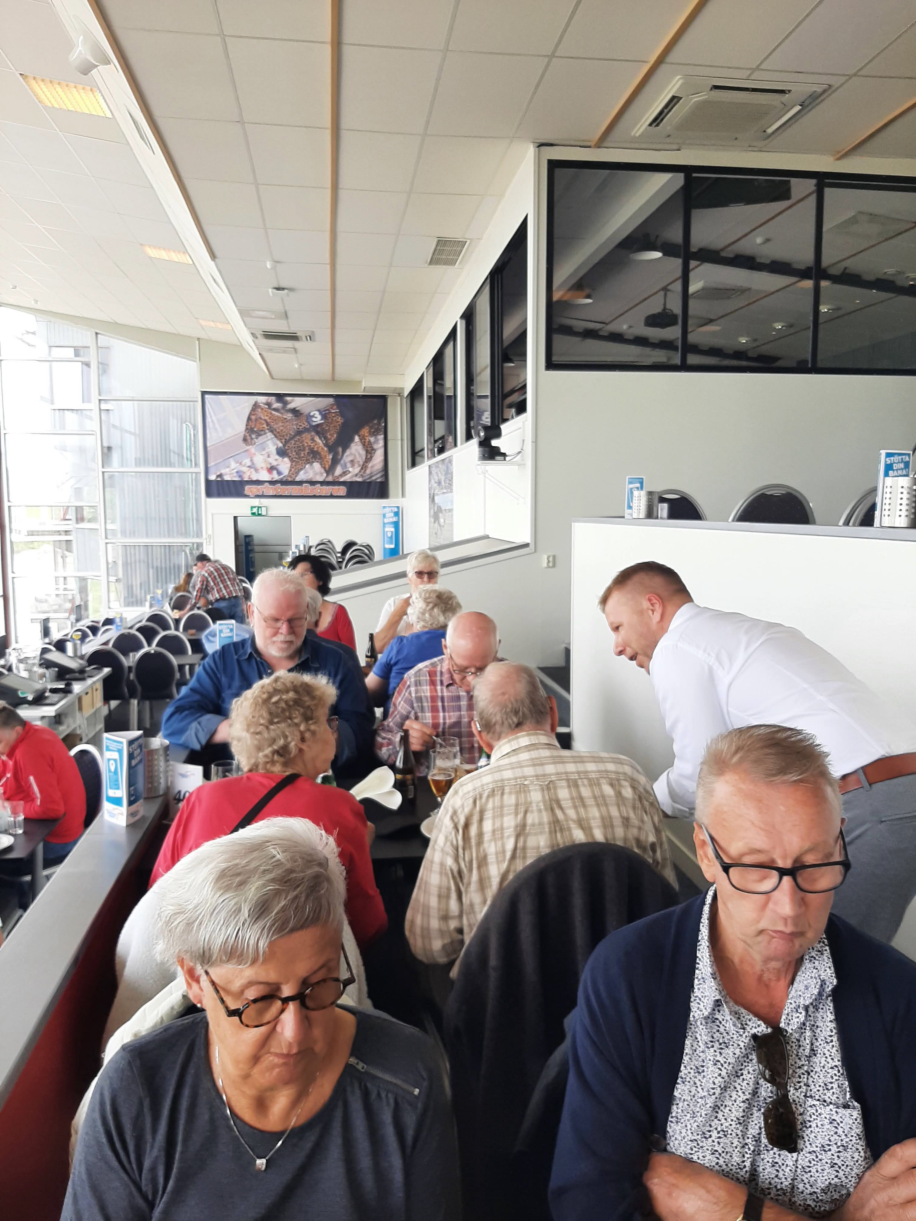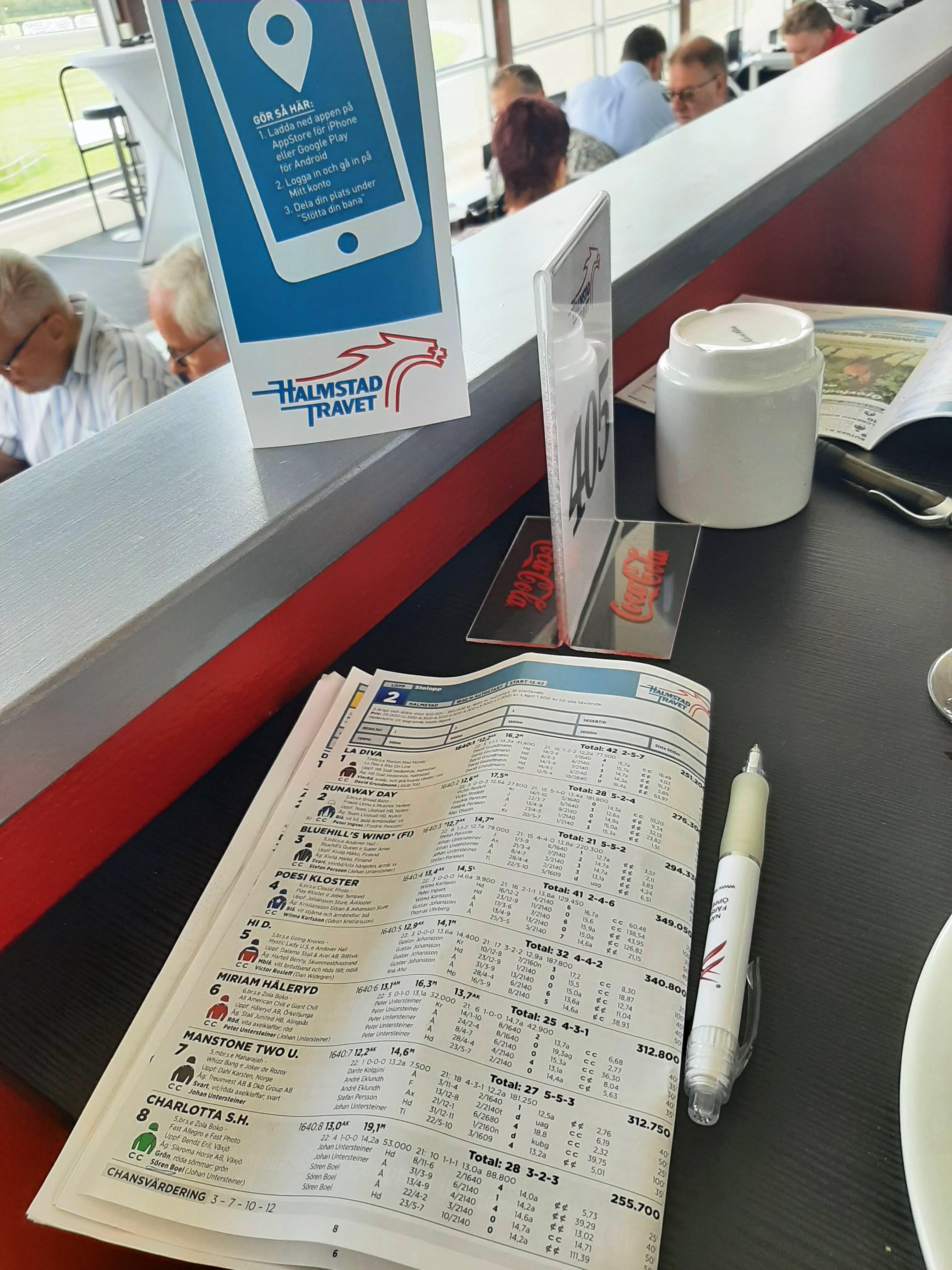 Efter rundturen väntade en god lunch i restaurangen. Jeanette och hennes kollega hjälpte oss med att ladda ner en app för att kunna spela på hästarna.