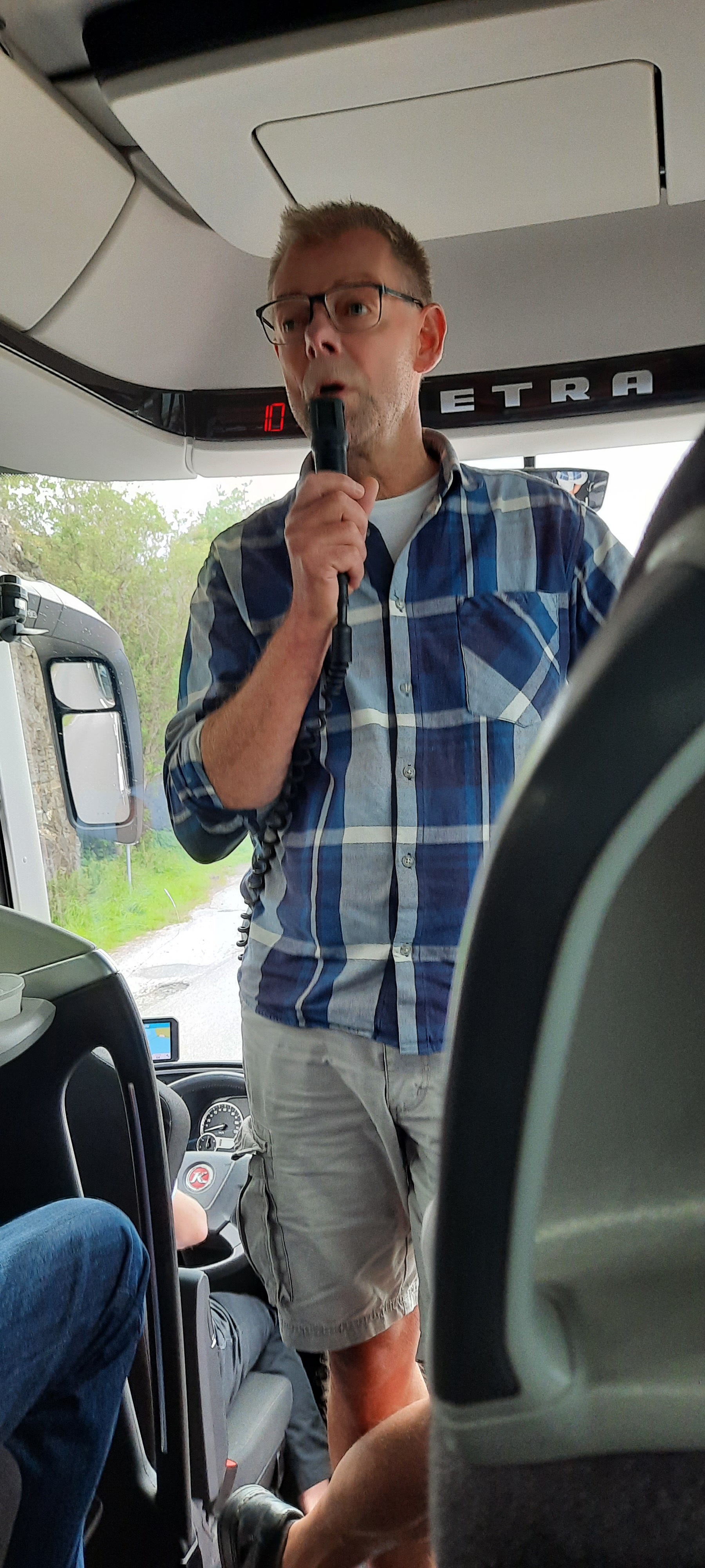 När vi hämtat upp vår guide Kent Holmberg tog vi färjan från Malö till Flatön. Därefter besökte vi Orust, Skaftön och Lysekil och även Grundsund och även Fiskebäckskil där TV-serien Saltön spelades in. Där fanns även en vacker kyrka som guiden berättade om. Lunchen på Rågårdsviks Pensionat bestod av en utsökt kummel. Nästa anhalt var Havets hus där både stora och små fiskar visade sig innanför glaset. Hemfärden gick med färja över Gullmarsfjorden, Vi är alla imponerade av fina via hus!