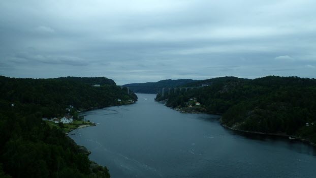 Uvedalen, utmed Norefjorden och följede älven Lågen till Kongsberg.