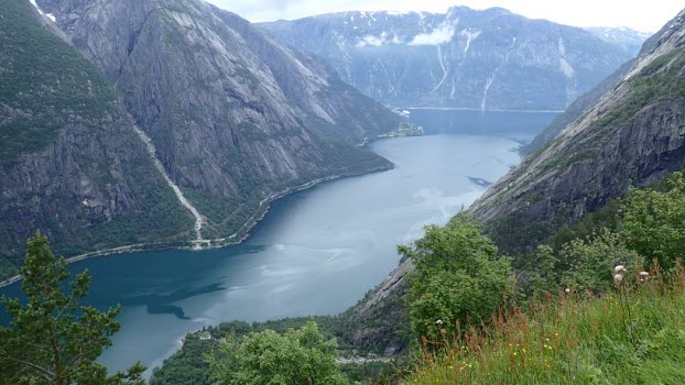 utflyktsdag. Vi åkte över den imponerande Hardangervidda, som är norra Europas största högfjällsplatå. Genom Sysendalen och Måbödalen kom vi ner i det lilla samhället Eidfjord.