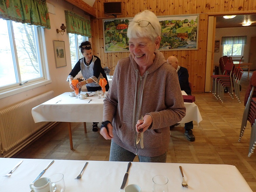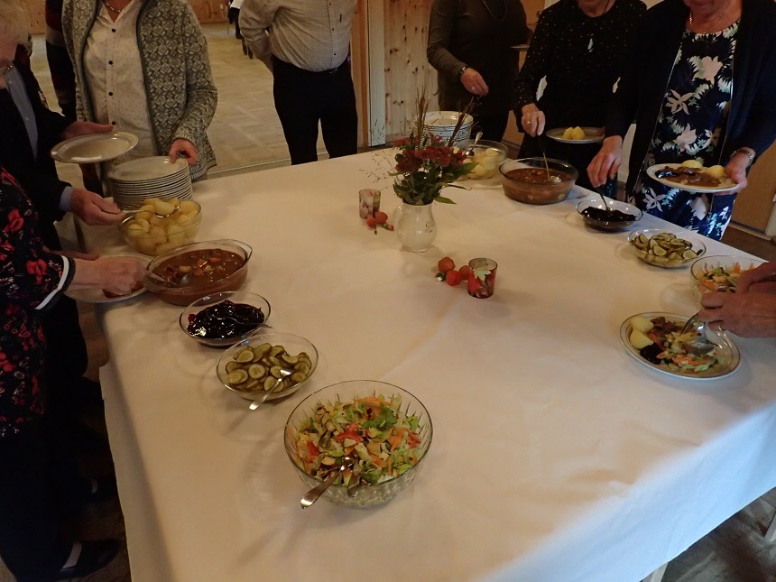 Karin Darwish ordnade maten till ca 50 personer. Köttgrytan och kakan till kaffet smakade bra.