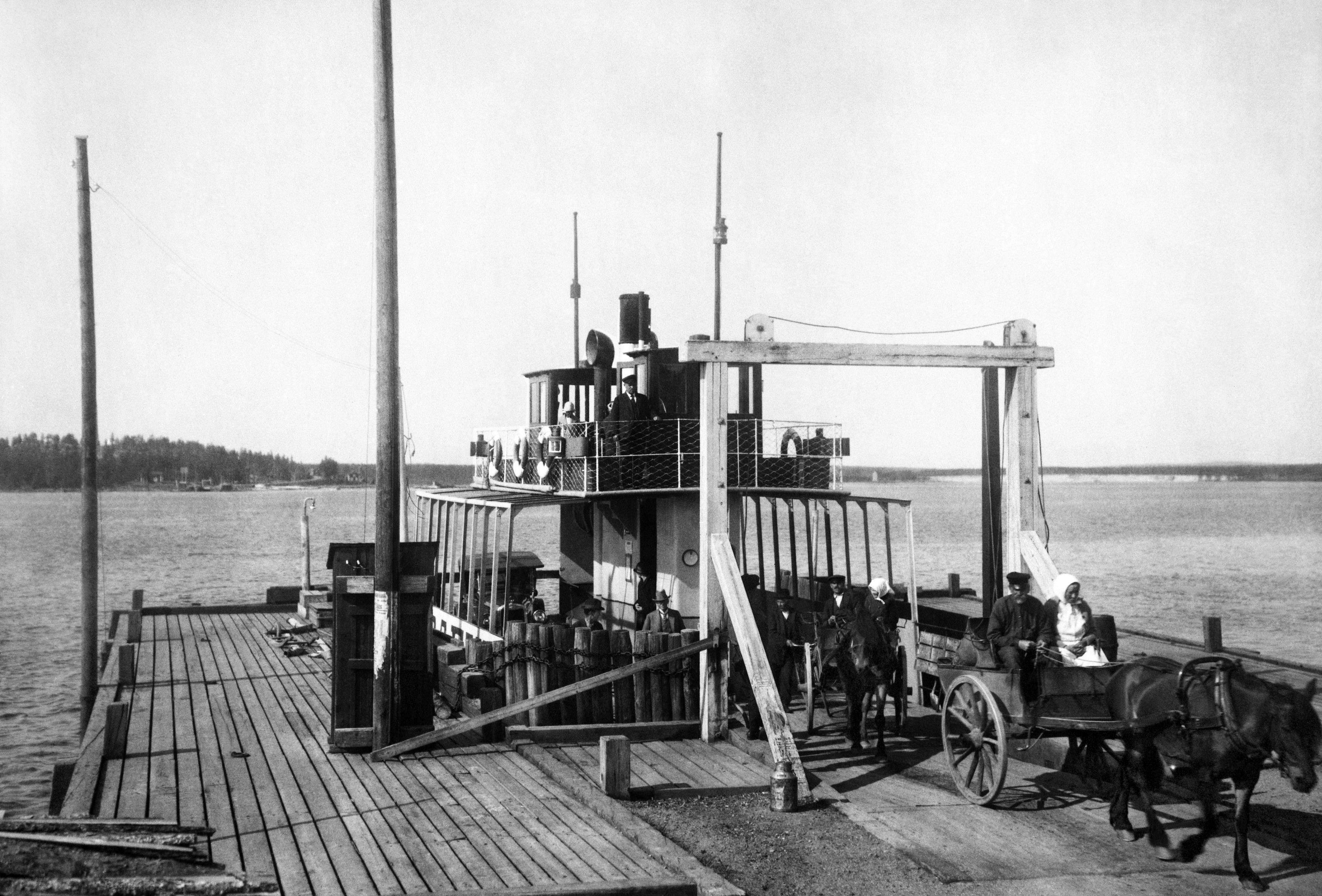 1927, passagerarna lämnar ångfärjan Trafik under kapten Åströms överinseende. I bakgrunden Bergnäset. Det är nu Luleå tar sats mot framtiden! Hör den spännande berättelsen på Bergnäsgården 17 mars. Foto: Luleå kommuns stadsarkiv.
