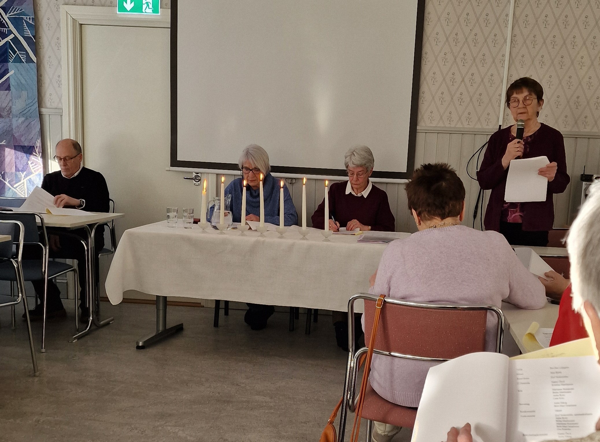 Mötet inleddes med att Kjell Henriksson svarade för parentationen över avlidna medlemmar 2025 med ljuständning, diktläsning och en tyst minut.