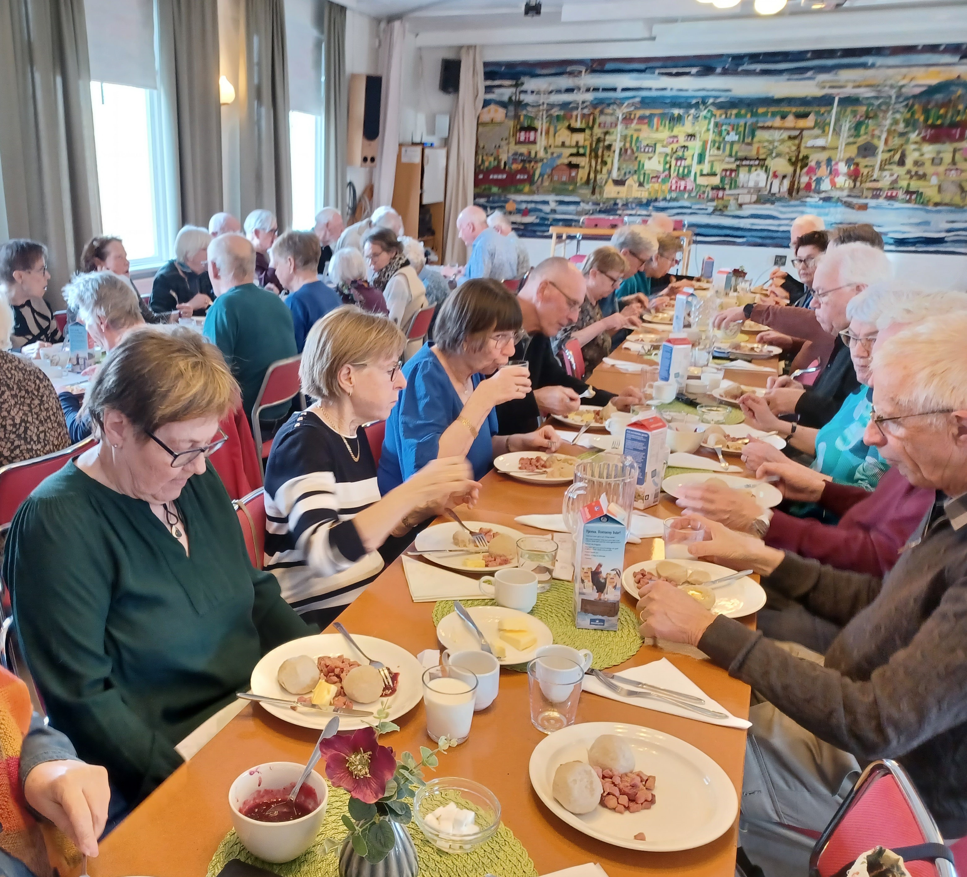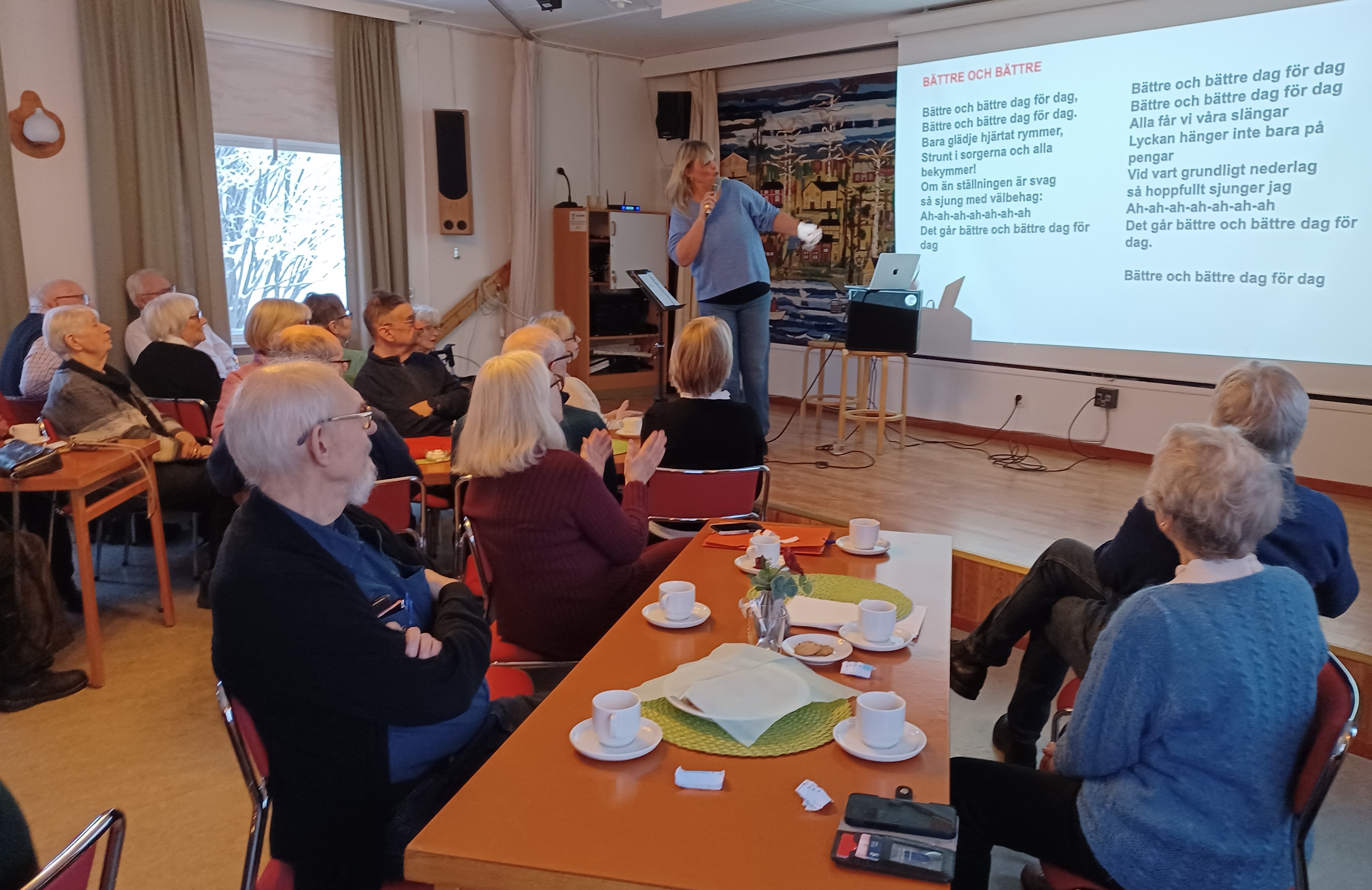 Britta Bergström underhåller oss i Siljabloo. Hon berättar om projekt hon har medverkat i bl a Allsång på Skansen och Så mycket bättre. Vi sjöng allsång och hade väldigt trevligt.