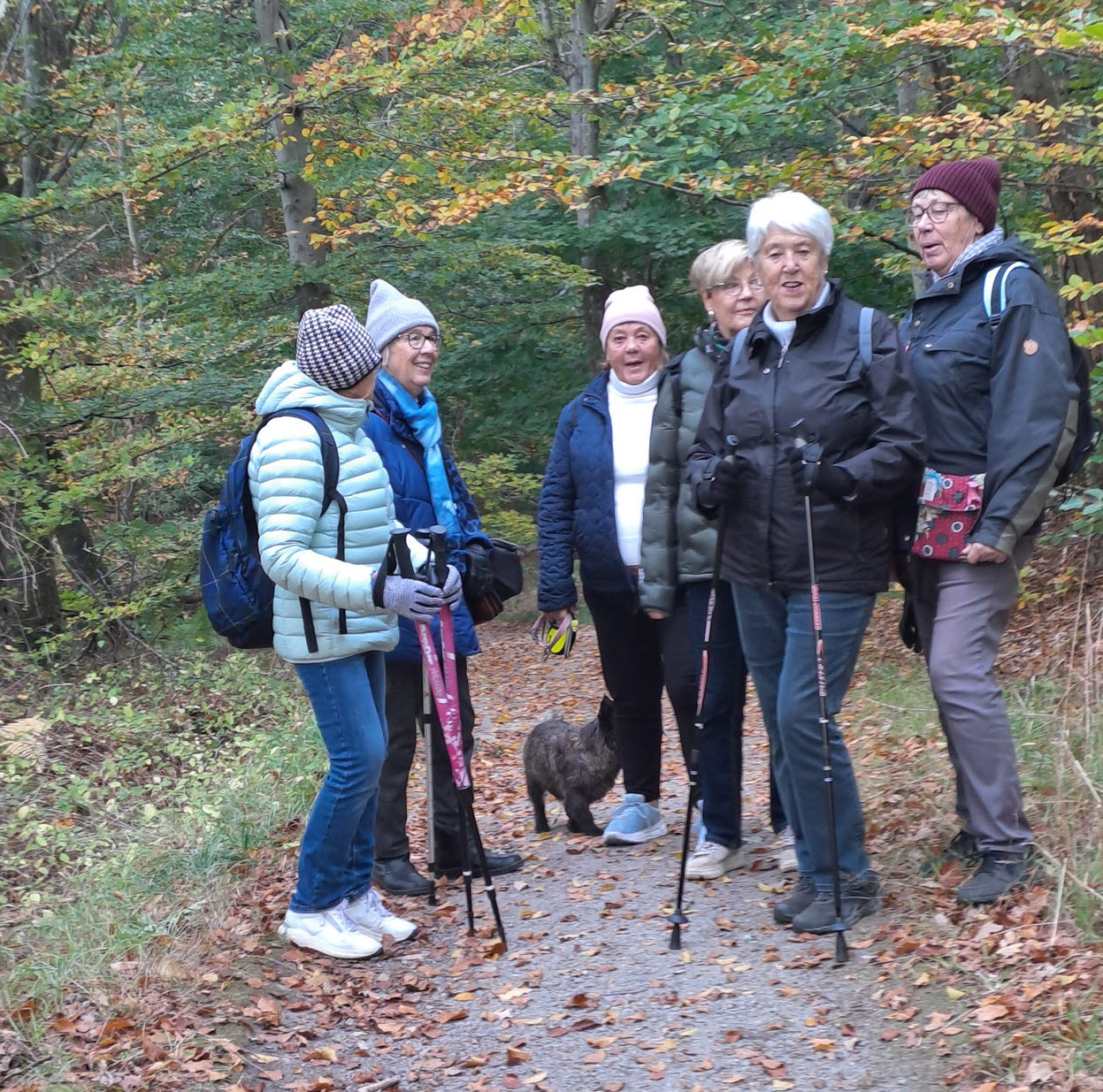 Sju damer gick den 19/10 runt Västra Mark i blåsigt väder (bilden).