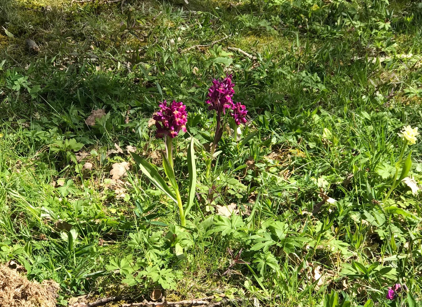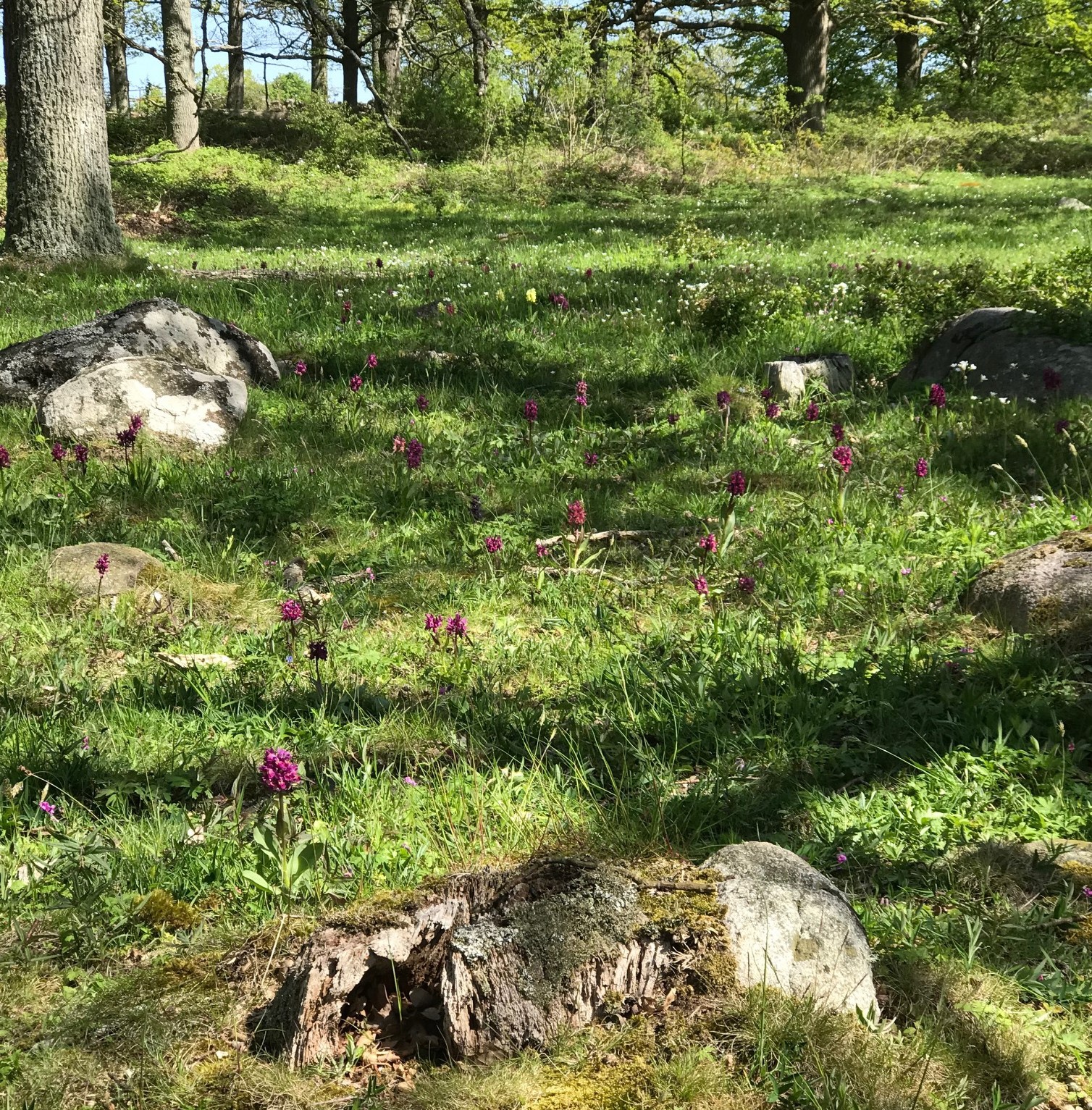 Åtta orkidésugna medlemmar (7 damer och en herre) strosade genom Brödernas hage och beundrade orkidéerna Adam och Eva och göknycklar som nu finns i stora mängder.