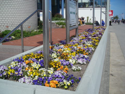 Längs strandpromenaden kunde man hitta små oaser med blommor, god mat och dryck!