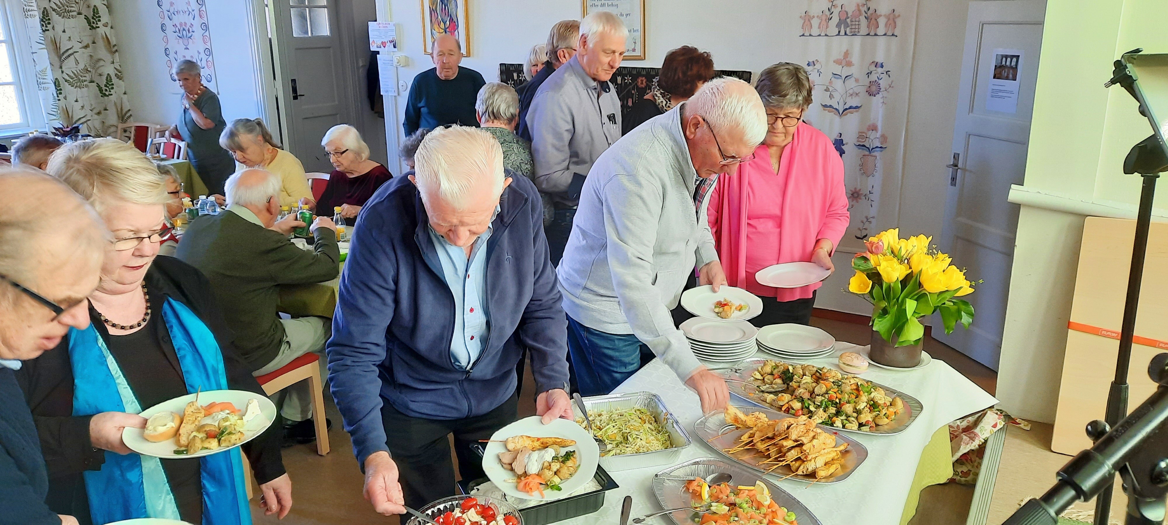 Buffeén, beställd från Mathallen i Bräkne-Hoby, var framdukad och såg väldigt tilltalande ut. Den smakade mycket bra och alla verkade nöjda.