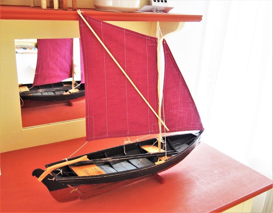 Vid min pensionering gick jag en kurs i modellbyggeri och jag fastnade för den här blekingska farkosten. Den fanns att köpa för många tusen kronor byggd i ek och en exakt kopia av en eka som byggts i verkligheten på Mårtenssons varv på Östra Hästholmen utanför Torhamn. För att fler skulle ha råd att skaffa ett fint minne från sin hembygd, förenklade jag byggandet och valde enklare material. Nu finns båtar från Brasilien till Canada och Finland. 2019 sålde vi villan, hela min utrustning gav jag bort till en äldre herre i Sölvesborg som hade ambitionen att fortsätta på mitt sätt.