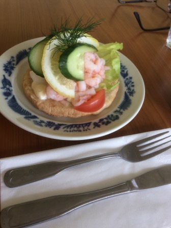 Vi åt räksmörgås och drack kaffe -