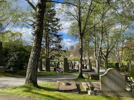 Vi blev guidade till små, stora och udda gravar. och fick information om personer och släkter som spelat stor roll för Sverige och Göteborg.