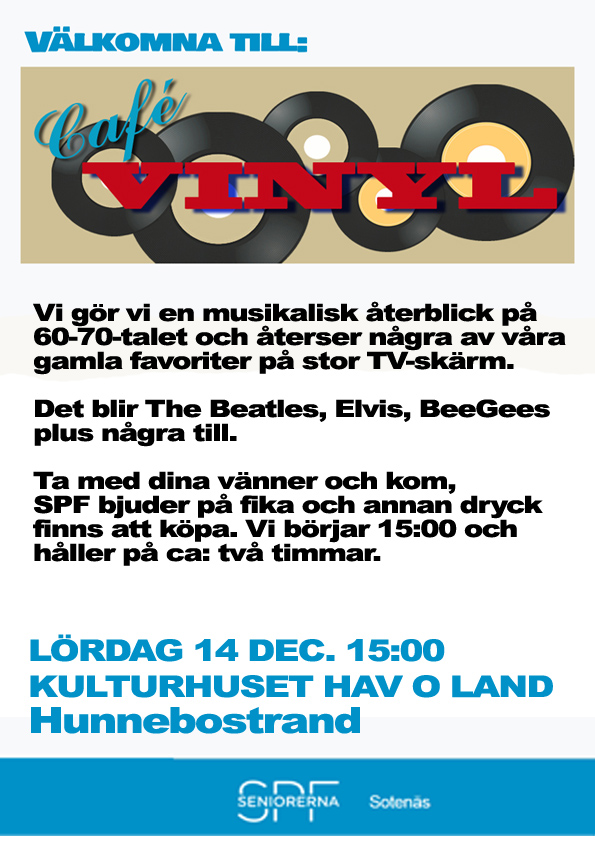 I vår serie träffar som vi kallar Café Vinyl träffas vi på lördagar för att lyssna på musik och se musikvideor från den tid vi var unga.