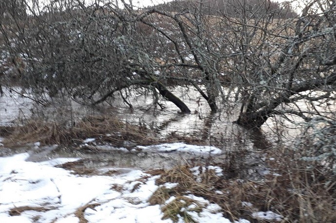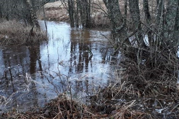 Bild 2: Bäcken mellan Fossane och Boråseröd. Ingen luft mellan bron och vattnet. 20210121 Fotograf: Ulla Johansson -