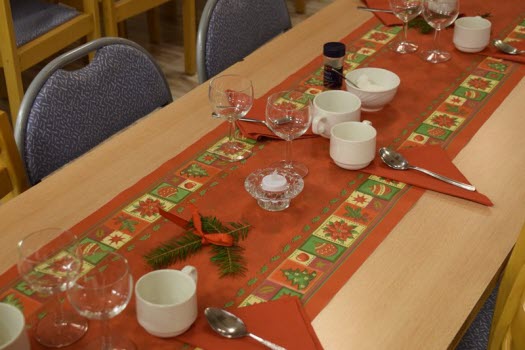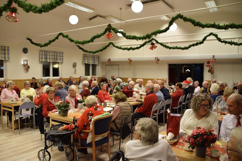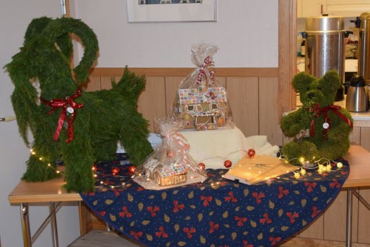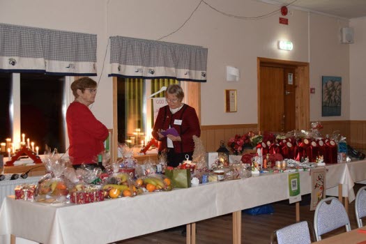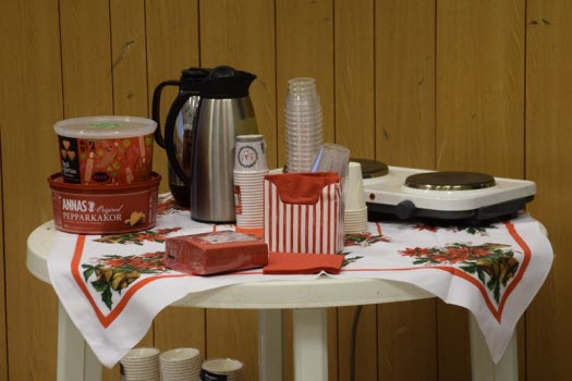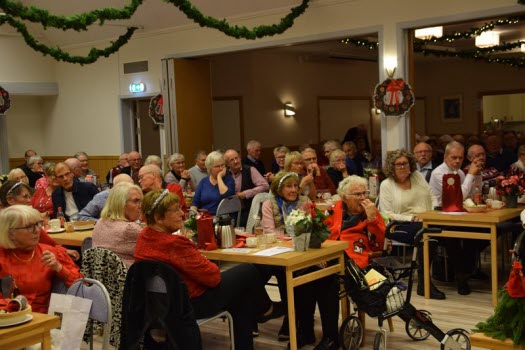 De drygt 170 besökarna välkomnades med glögg och pepparkaka. Borden var juligt uppdukade.
