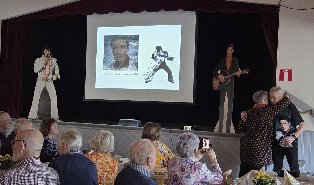 Med strålande solsken ute men en fantastisk entusiastisk Stig Karlsson inne i Bygdegården, fick vi höra honom berätta om sin största idol Elvis Presley, och om "mitt liv som Elvis fan". Redan som liten pojk blev han inspirerad av Elvis musik och liv. Stig berättade om Elvis framgång och liv fram till hans bortgång. Vi fick se snuttar från olika spelningar med musik och en massa bilder.