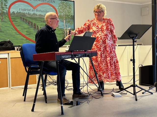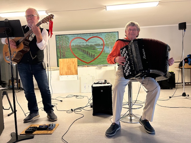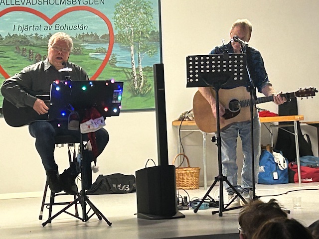 Här är det Åke och Raimo som underhåller med kända julvisor. Hällevadsholms skolans barn kom och lussade för oss, massor av tärnor, stjärngossar, tomtar och så lucia förstås. Dessa fick vi inte ta med på bild men de gladde oss med sin närvaro.