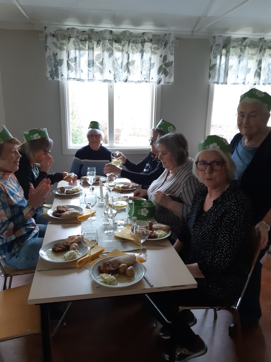 Inga sura miner för att vi inte var på Fiskebo. Matz Gunnarz underhöll och de blev mycket uppskattade. En god vårbuffé bjöds och god kaka till kaffet.