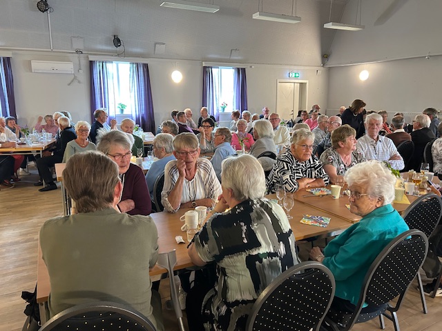 Elin har varit föreningen trogen i drygt 39 år. naturligtvis har hon lockat med sonen Rolf också. Det finns 70 medlemmar 85 år och äldre i föreningen 30 av dessa tackade ja och kom till denna trevliga eftermiddag.