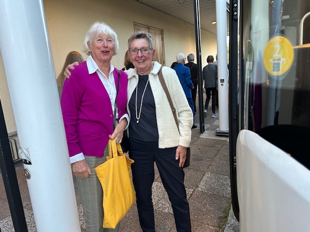 I strålande höstsol gick färden till Säffleoperan, där en buffé stod framdukad till oss och naturligtvis kaffe i pausen. Så här glada var Lisbeth och Ragnhild efteråt, kanske var det skönt att komma ut och få vila öronen då ljudnivån var ganska hög.