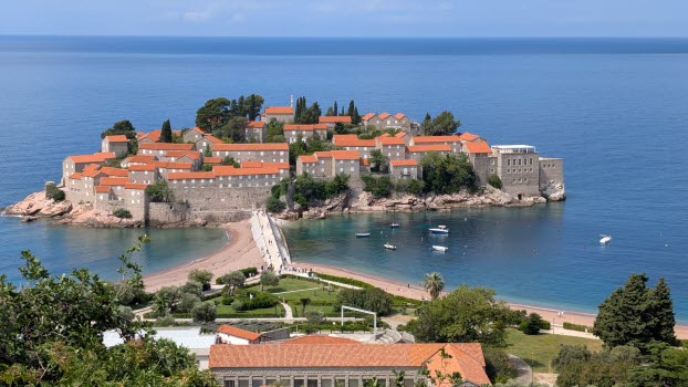 Bas i Bečići med utflykter till Budva, Cetinje, Skadarsjön, OurLady of the Rocks, Sveti Stefan och Kotor.