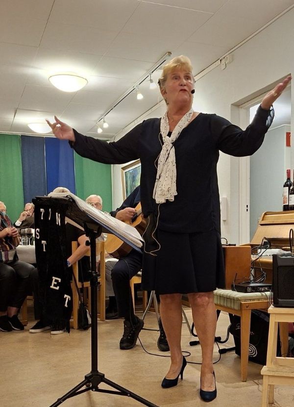 Vi underhölls av duon Tonsteget Mia och Lennart med härliga historier och många kända /okända låtar accompanjerade på gitarr.