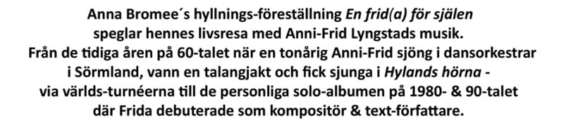 Anna Bromee, Kulturhuset, lördag den 23 november kl. 18.00. OBS! Flyer för utskrift, se under bild.