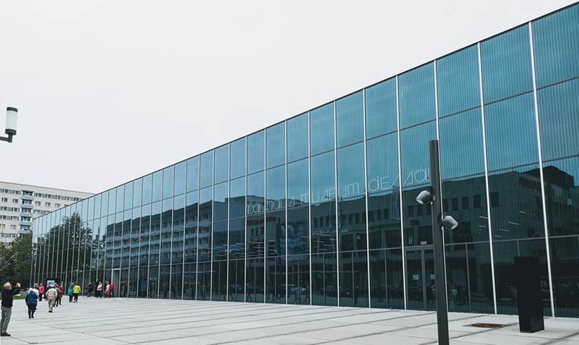 08.30 rullade bussen mot Bauhaus, Dessau. Där tittade vi på de ursprungliga skollokalerna.