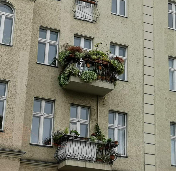 På väg dit såg vi denna vägg, som pryddes av en maxad balkongodling.
