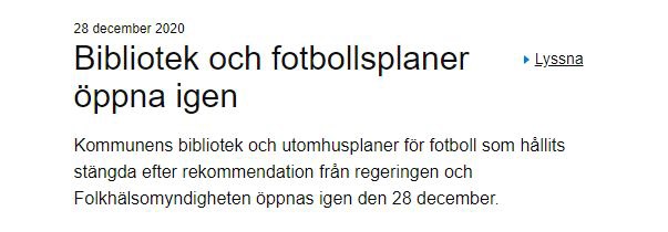 Läs mer Härryda kommun: Bibliotek och fotbollsplaner öppna igen den 28 december