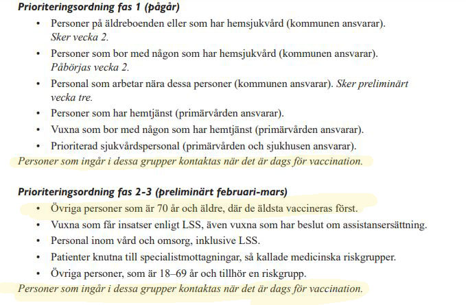 Prioriteringsordning fas 2-3 (preliminärt februari-mars)