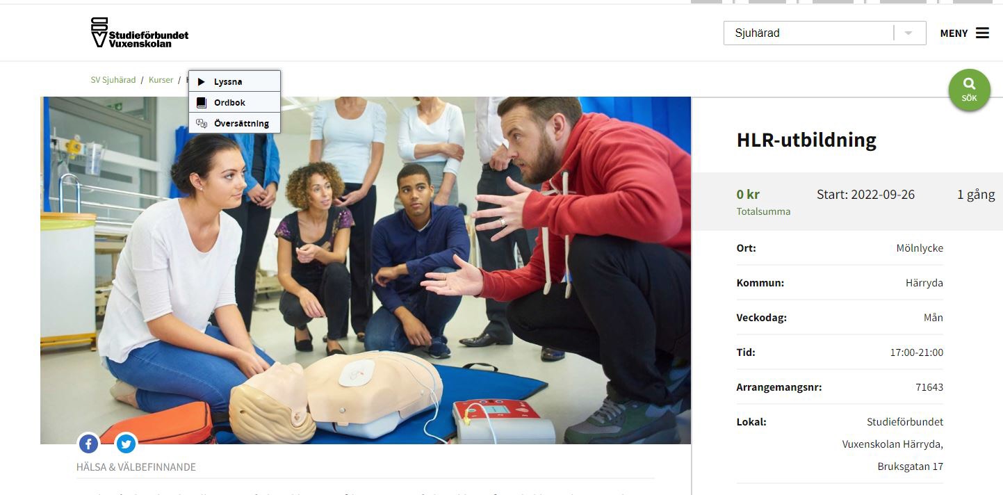 Studieförbundet Vuxenskolan inbjuder till två kurser i HLR i Mölnlycke.
