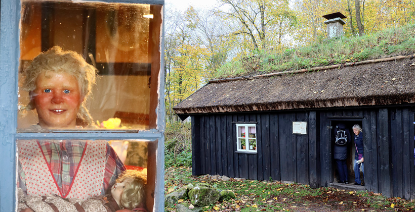Nu har vi flyttat oss en kort sträcka till Cesarstugan där vi ska se en utställning om “Bondens År”, som visar ett antal miljöer med mycket naturtrogna vaxdockor som visar exempel på bondens arbetsuppgifter.