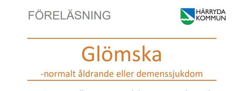 Onsdag den 5 oktober, Mölnlycke kulturhus kl. 18.00: "Glömska -normalt åldrande eller demenssjukdom"
