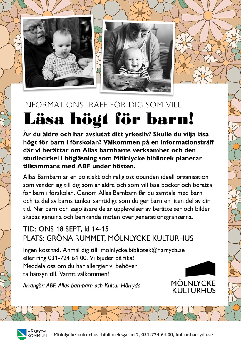 INFORMATIONSTRÄFF den 18/9 kl 14.00, för dig som vill läsa högt för barn!