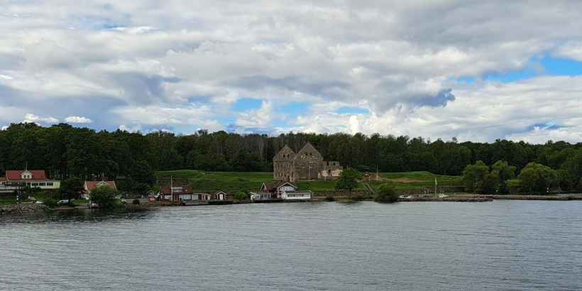 Vi börjar närma oss Visigsö med Visingsborgs slottsruin. Slottet började byggas på 1570-talet på uppdrag av Per Brahe den äldre.