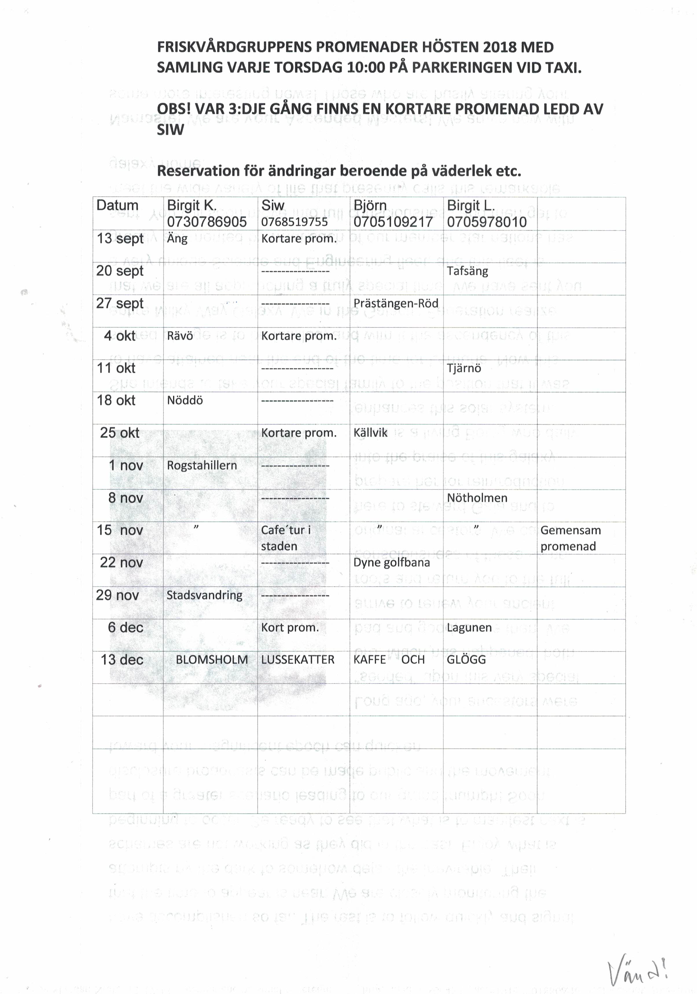 Vi fortsätter promenera på torsdagarna som vanligt.