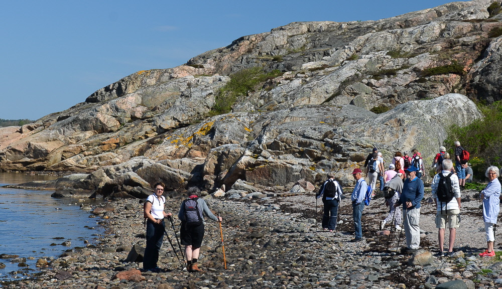 En underbar och solig Kristi Himmelsfärdsdag promenerade ett tjugotal Tjörnveteraner på Björshuvudet. Vandringen gick på kala eller bevuxna bergsklippor och genom bördiga skalgrusblandade dalgångar. Röjning, bete och slitage hindrar området från att växa igen och bevarar den särskilda floran. Artrikedomen är stor och nu blommade gullvivan (majnycklar på bygdemål) för fullt. Området är instängslat vilket gjort det möjligt för betande hästar vår och höst.