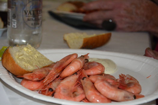 Den 5 september hade vi räkfest i Rönnängs bygdegård med stora härliga räkor, gott bröd och ett vitt vin för dem som så önskade. Stämningen var hög från början och den höjdes ytterligare med hjälp av kända allsånger under Lennart Olssons ledning. Vi var nästan sextio personer, som frossade i räkor och underhölls av Haga Lennart. Efter maten svarade vi på kluriga frågor i en musikquiz med geografiskt tema. Efter lotteridragning och kaffe med hembakad äppelkaka avslutades kvällen med dans till Haga Lennarts musik.