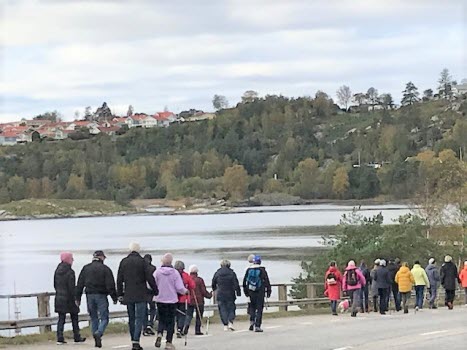 Dagens kulturvandring på Almön hade lockat drygt fyrtio Tjörnveteraner. Vandringen startade från Myggenäs Marin AB där Magnus Stenström berättade om företagets verksamhet. Barbro Carlsson guide oss runt och visade oss den sällsynta och fridlysta Västkustrosen. Vi intog en vällagad lunch på Restaurang Tjörnbron och njöt av den vidunderliga utsikten över Hakefjorden. Vägen tillbaka gick igenom Almöns campingområde och badplats.