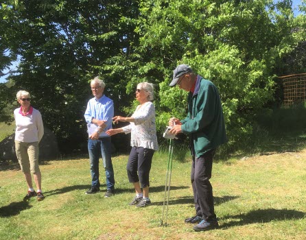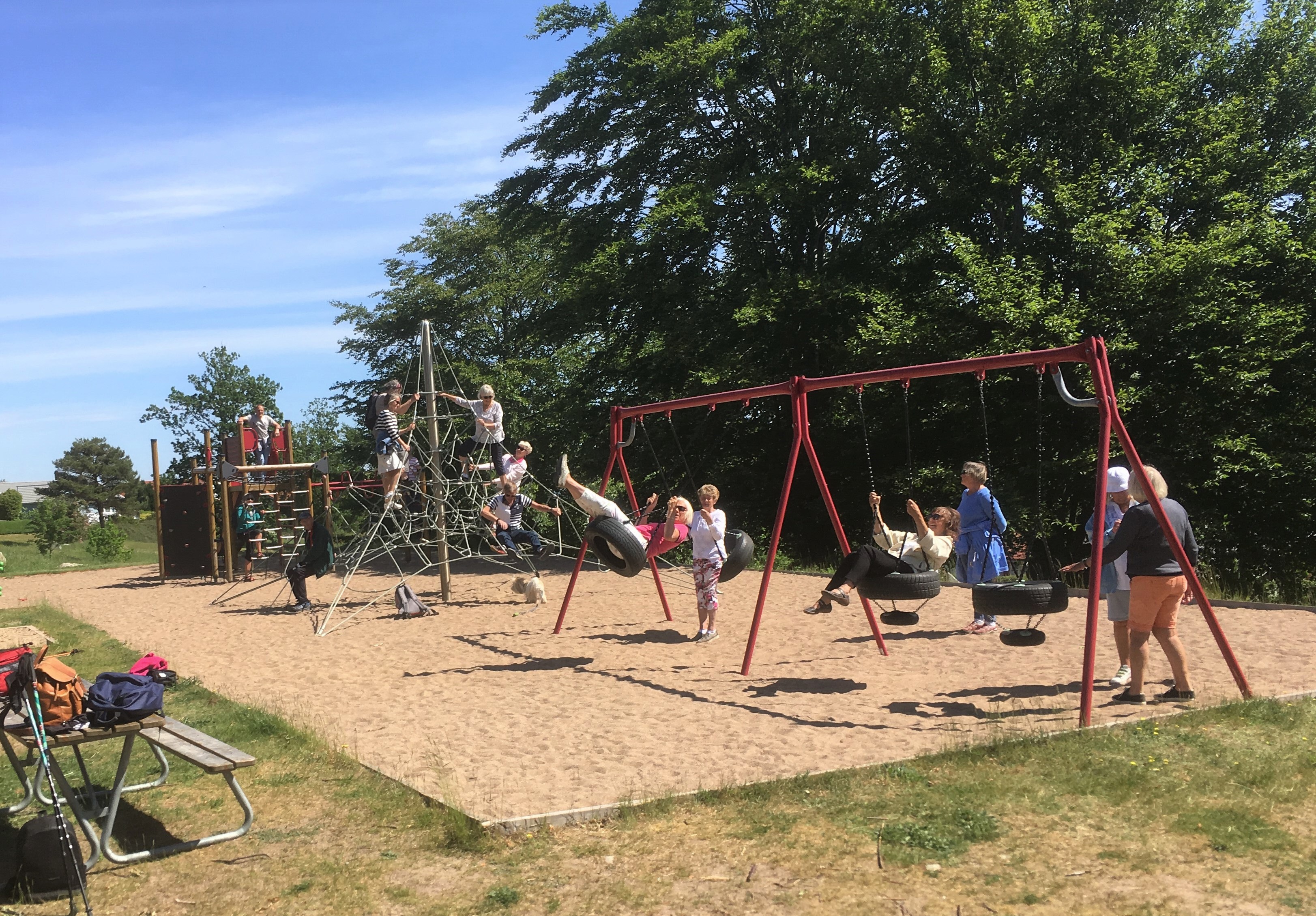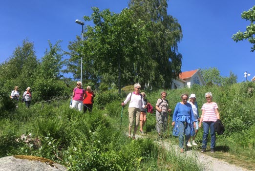 Till dagens kulturvandring (4 juni) anslöt sig ett tjugotal promenadsugna. Vi gick runt på Myggenäs motionsslinga. Barbro Carlsson guidade och berättade om hur villaområdet kom till mm. Fikastunden blev vid en lekplats, där seniorerna fick möjlighet att känna sig som barn på nytt. Göran och Ingrid Andersson hade en liten berättarstund om ormar.