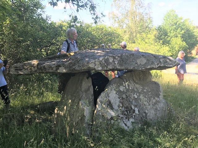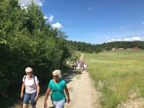Försommarens sista kulturpromenad gick från Svanvik till dösen vid Styrdalen. Den gamla stenkammargraven ligger alldeles vid grusvägen mellan Valla kyrka och Furusäter. Henry Hermansson berättade att graven är från stenåldern och omkring 5 000 år gammal. Vandringen gick delvis genom marker som förr betades av djur men som nu håller på att växa igen. Föreningen bjöd på fika vid återkomsten till Egnahemsfabriken. Tinna Harling redogjorde för verksamhetens byggprojekt och målgrupper.