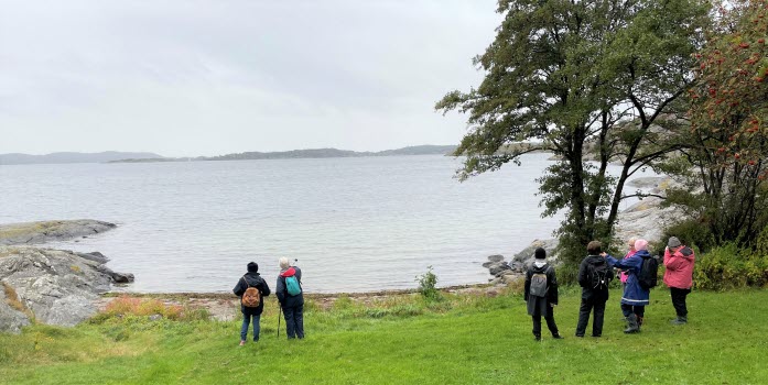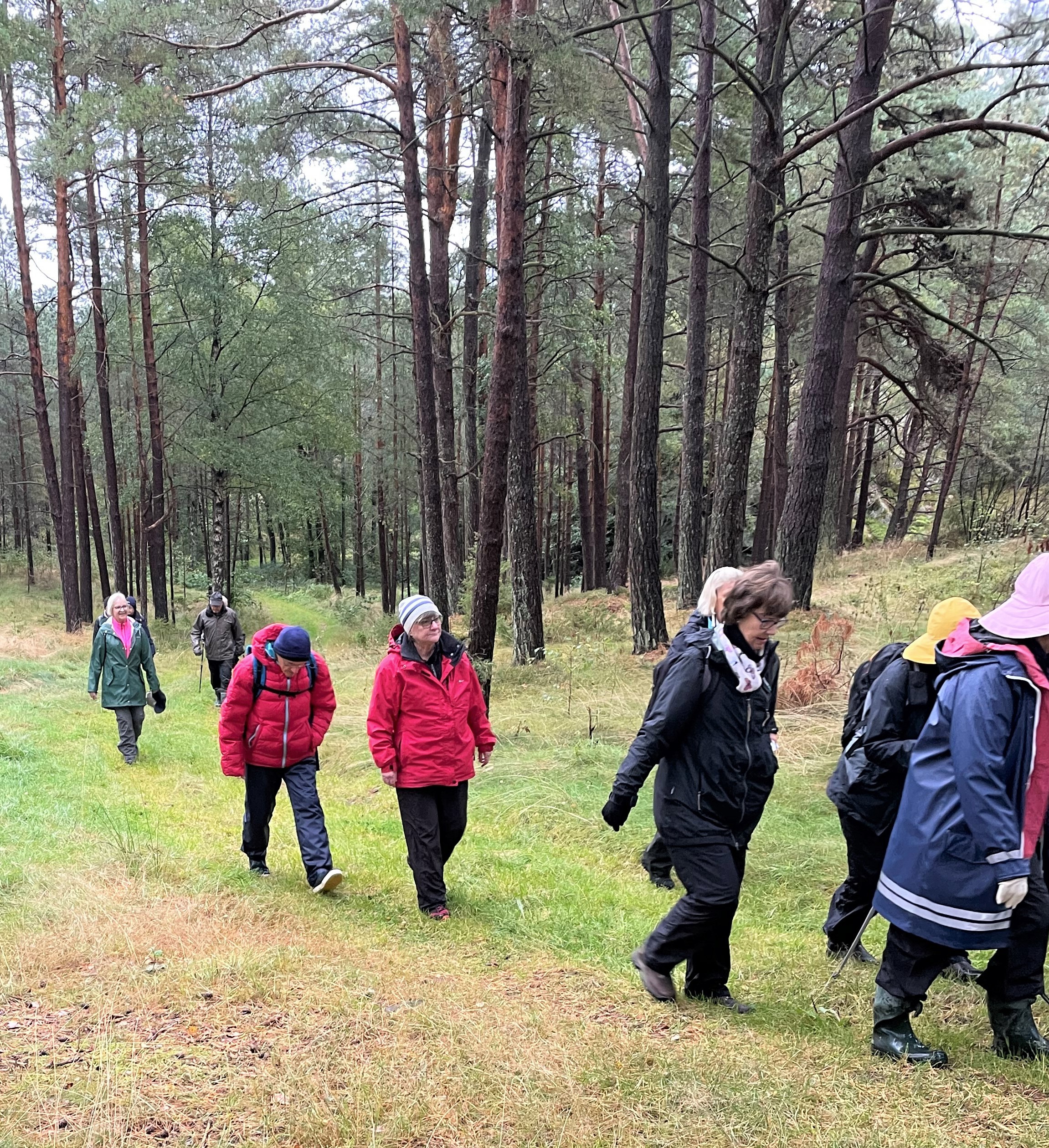 14 glada vandrare trotsade regnet och kom till Gåseknöde. Där mötte Irene och Börje upp och tog oss runt på en trevlig vandring. Vi gick över gamla åkermarker som nu var igenväxta. De berättade bland annat om gamla torp, vägar och hamnar.