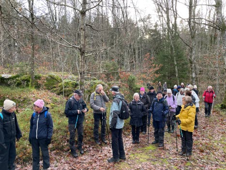 Den 25 nov. samlades 32 hurtiga SPF-vandrare vid Låkas parkering. Henry startade med att berätta lite om Låkas historia. Tidigare fanns där ett trankokeri. Från 1850-talet var där en tilläggsplats för ångbåtar, som trafikerade innerfjordarna. Samtidigt etablerades Tjörns första badinrättning i det före detta salteriet. Där fanns också tidigare ett bageri. Promenaden gick vidare upp mot Kleva skog och Krommeröd, där vi fikade. I Krommeröd byggdes 1886 en småskola där 30 barn undervisades. Sedan vandrade vi tillbaka till parkeringen. Ännu en gång hade vi "tur med vädret"!